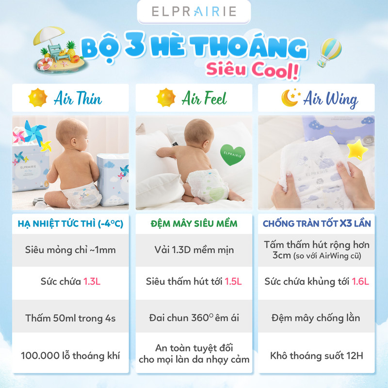 Elprairie là thương hiệu tã bỉm cao cấp đến từ Hàn Quốc, nổi bật với tiêu chí siêu mỏng – siêu thấm – siêu thoáng. Sản phẩm được nghiên cứu với công nghệ hiện đại và chất liệu an toàn, phù hợp cho cả bé có làn da nhạy cảm.