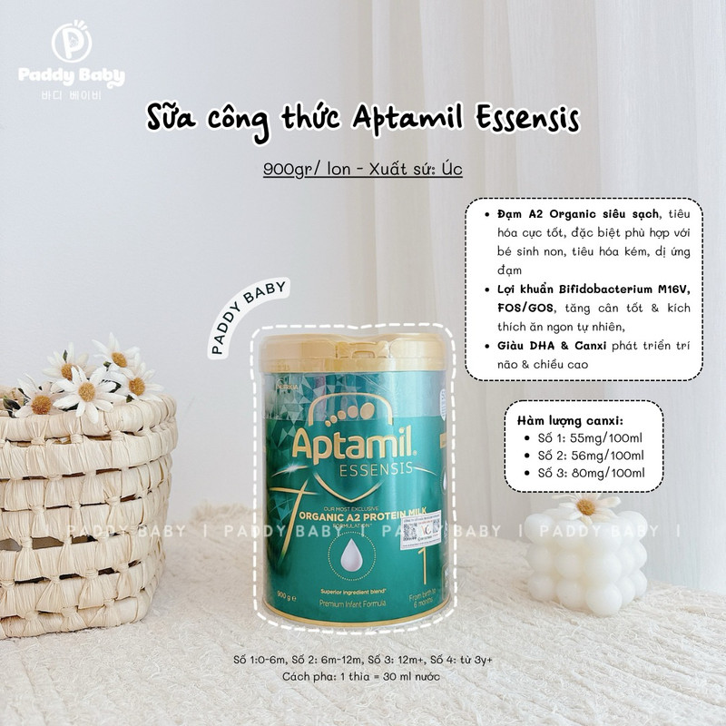 Sữa bột Aptamil Essensis Organic là dòng sữa công thức hữu cơ cao cấp hàng đầu tại Úc, nổi bật với thành phần đạm A2 Organic tinh khiết, được nhiều mẹ tin chọn cho bé trong những năm tháng đầu đời. Sản phẩm hướng đến sự phát triển toàn diện, đặc biệt phù hợp với những bé có hệ tiêu hóa nhạy cảm, sinh non hoặc dễ dị ứng đạm sữa bò thông thường.