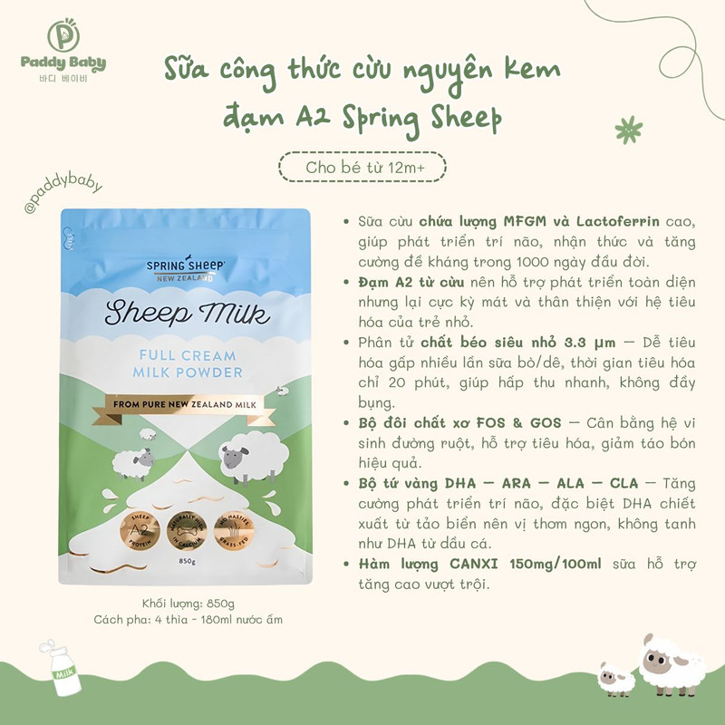 Nhờ công thức đạm A2 tự nhiên từ sữa cừu, Spring Sheep đang được nhiều mẹ lựa chọn như một trong những dòng sữa hỗ trợ tăng chiều cao kết hợp tăng cân khỏe mạnh, đặc biệt phù hợp với bé có hệ tiêu hóa nhạy cảm.