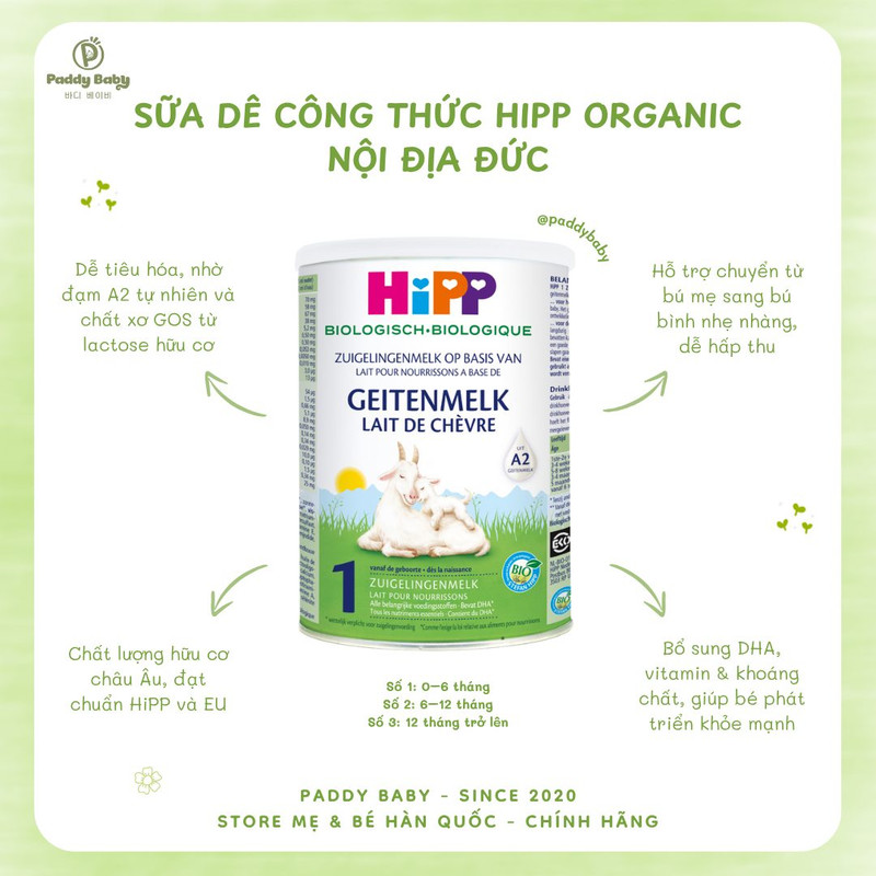 Sữa dê HiPP Organic là dòng sữa dê hữu cơ chuẩn EU, được nghiên cứu và phát triển bởi HiPP – thương hiệu dinh dưỡng organic hàng đầu châu Âu với hơn 30 năm kinh nghiệm. Sản phẩm được thiết kế phù hợp cho bé trong giai đoạn chuyển từ ti mẹ sang ti bình, hỗ trợ tiêu hóa nhẹ nhàng và giúp bé hấp thu dưỡng chất tốt hơn ngay từ những năm tháng đầu đời.